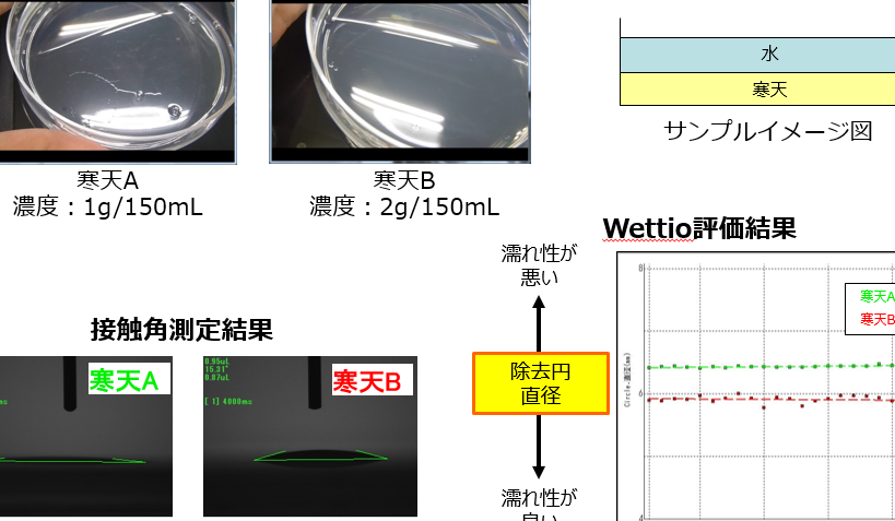 - 接触角が小さいほど、親水性が強いと評価されます。