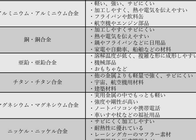 金属の種類と特性