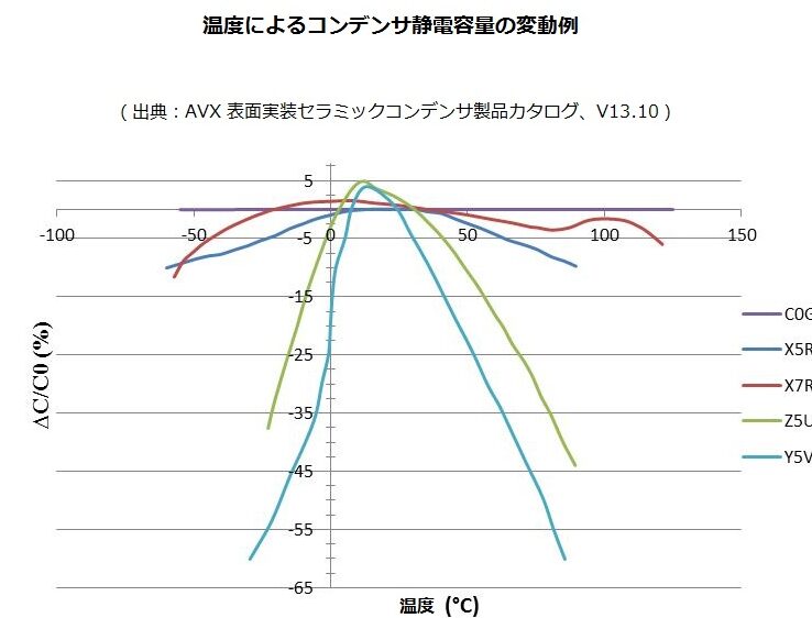 - 安定した容量:温度変化に対しても、容量の変化が約15%以内で収まります。