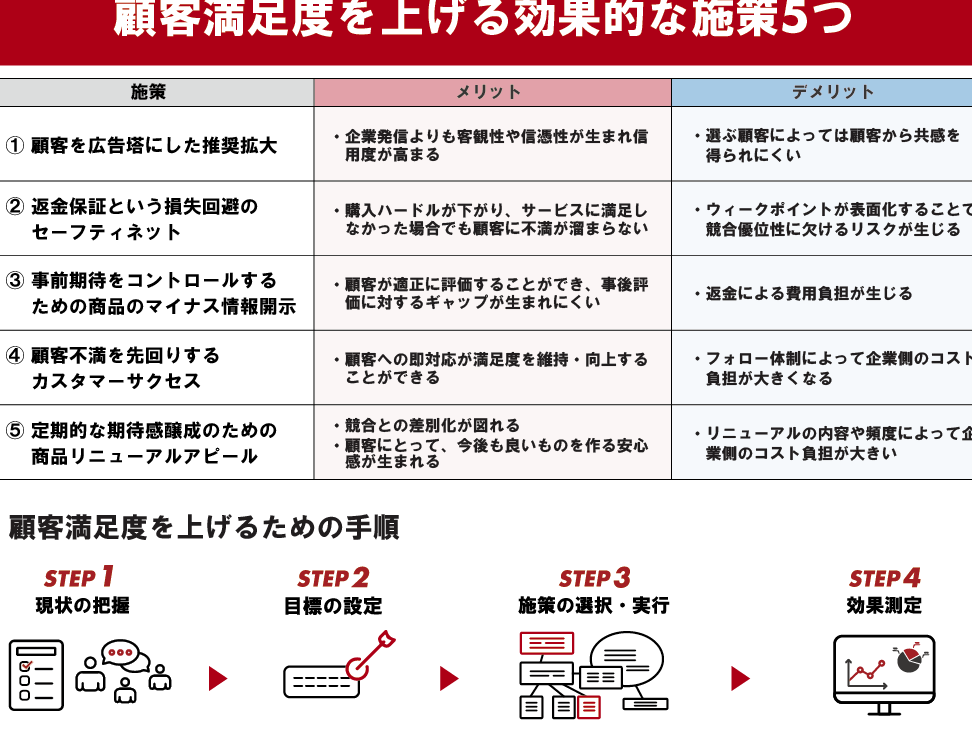 - 顧客ロイヤリティの向上: 満足度を高めることが、顧客のリピート率を向上させる要因となります。
