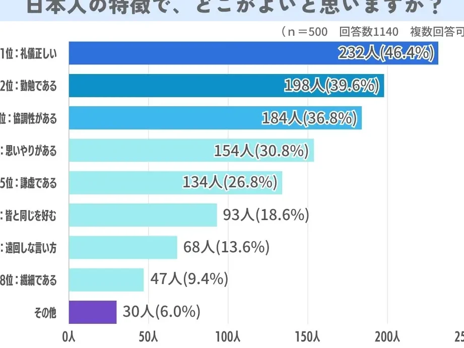 私たちは、日本人の特性を理解することで、彼らの文化や社会をより深く知ることができる。日本人は、特に以下のような特性を持っている。