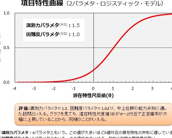 | 識別力 (a) | 受験者間でどれだけ差異があるか示す指標 |