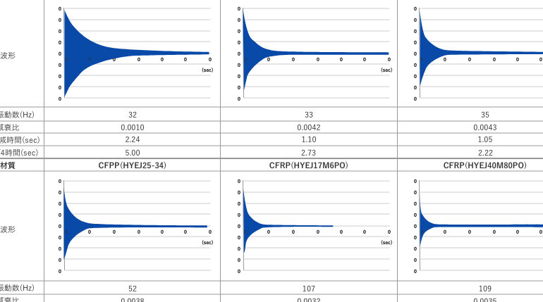 - 減衰比:エネルギー損失を表す指標であり、高い値ほど減衰効果が大きい。