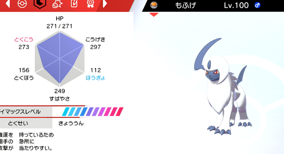 - 努力値 (EV) の振り分け: アブソルの場合、主に攻撃(Attack)と素早さ(Speed)に努力値を集中させることが理想です。これによって、高威力の物理技で先手を取りつつ、一撃必殺のチャンスを増やすことができます。