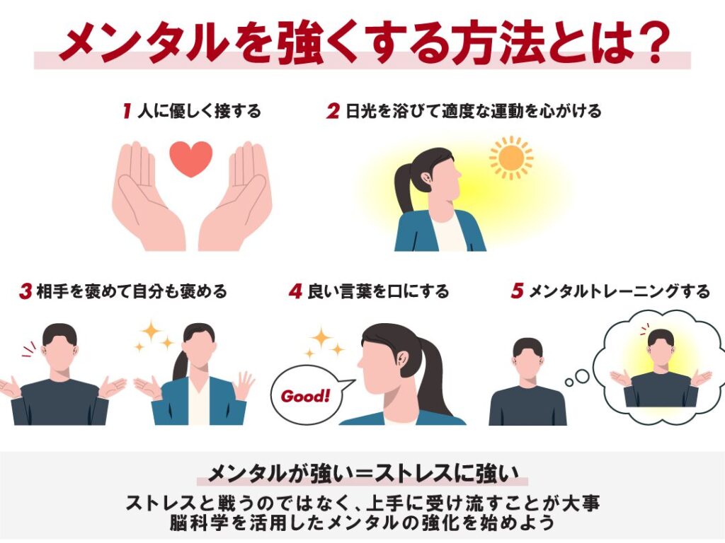- 職場での生産性向上: 従業員が高い精神力を持つ場合、生産性や創造性が向上し、チーム全体の成果にも良好な影響があります。