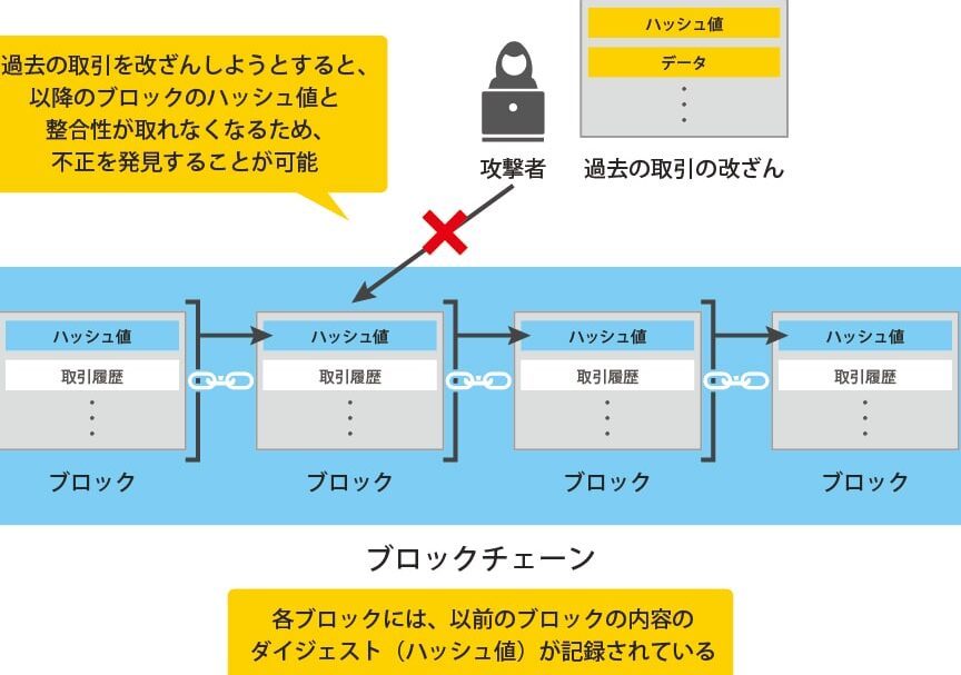 - 耐改ざん性: データ変更には膨大な計算能力と時間を要し、不可能に近い。