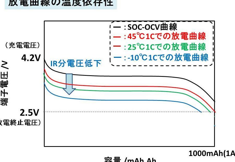- 放電効率への影響: 一方、高温によって副反応が進行しやすくなるため、本来のエネルギー供給能力が低下する可能性があります。