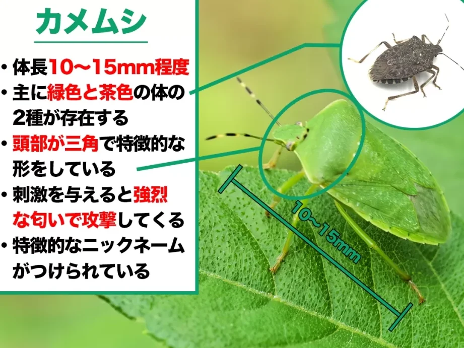 - 臭い物質: カメムシは不快な臭いを放出することで捕食者を遠ざけます。この臭いは、植物由来の成分や体内で合成された化学物質から生成されます。