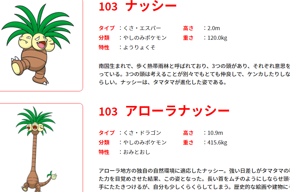 ナッシー 特性の基本情報