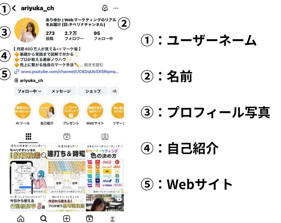 インスタグラムでは、ビジュアルコンテンツが中心となります。私たちが注目すべきポイントは次のとおりです。
