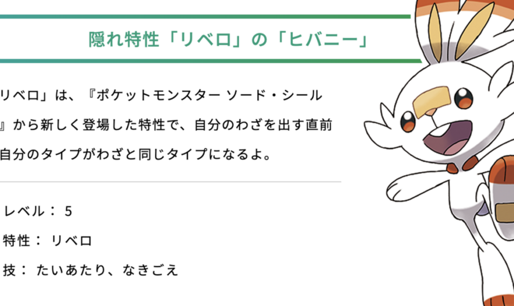 - タマゴ孵化:親ポケモンが持つ特性によって変動し、高確率で夢特性が遺伝することもあります。