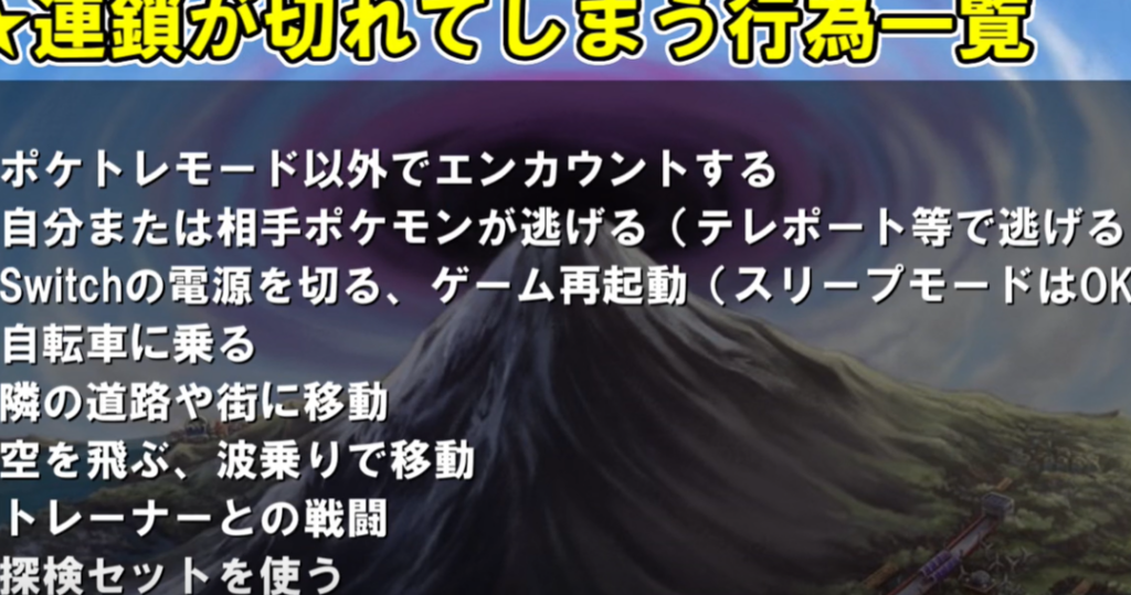 - リセット条件: 捕獲失敗や戦闘など、一部の行動によってこの連鎖数はリセットされることがあります。