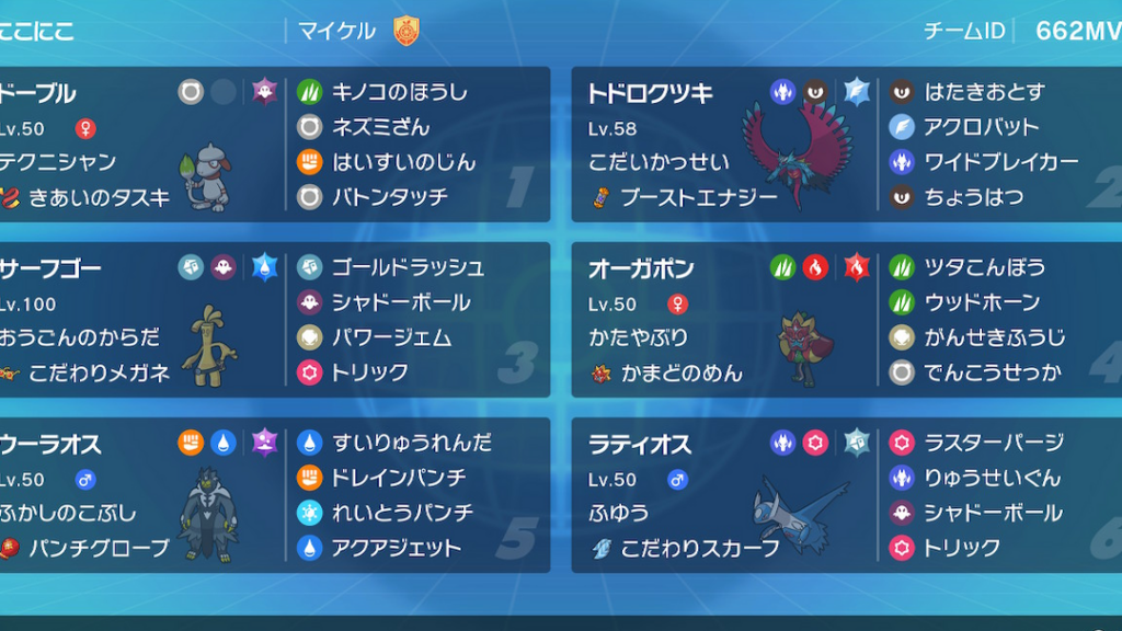 - サポート型ポケモン: たとえば、「トゲキッス」や「ヒーリング型」のポケモンがいることで、ドーブルが長く戦闘できる環境を整えます。