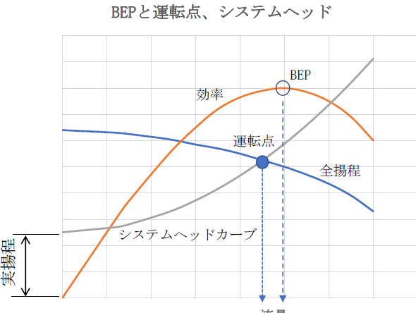 - 負荷点: 特定の流量で必要とされる揚程。