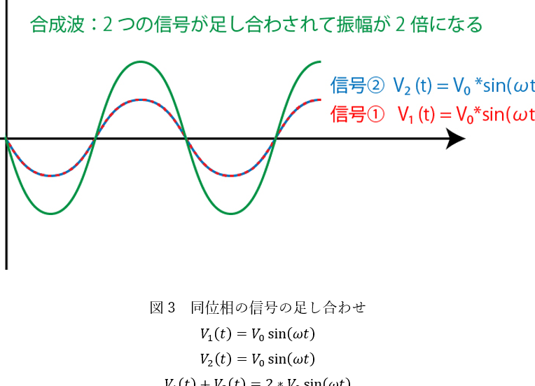 - 建設的干渉: 同じ位相で到達した場合、信号が強くなる。