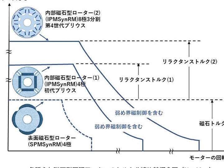 モーター制御システムも進化しており、その結果としてトルク特性に大きな影響があります。例えば: