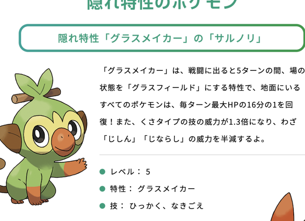 これらすべてを踏まえた上で育成計画を立てれば、サルノリはその夢特性「グラスメイカー」によってさらに大きな影響力を発揮できるでしょう。