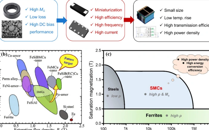- 飽和磁束密度: 軟磁性材料には飽和磁束密度という限界があります。このため、大きな電流を扱う場合には他の素材との併用を検討しなければならないことがあります。