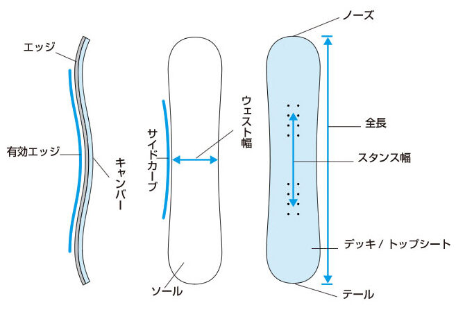 各スノーボード特性は、その滑走性能にも直接的な影響を与えます。例えば: